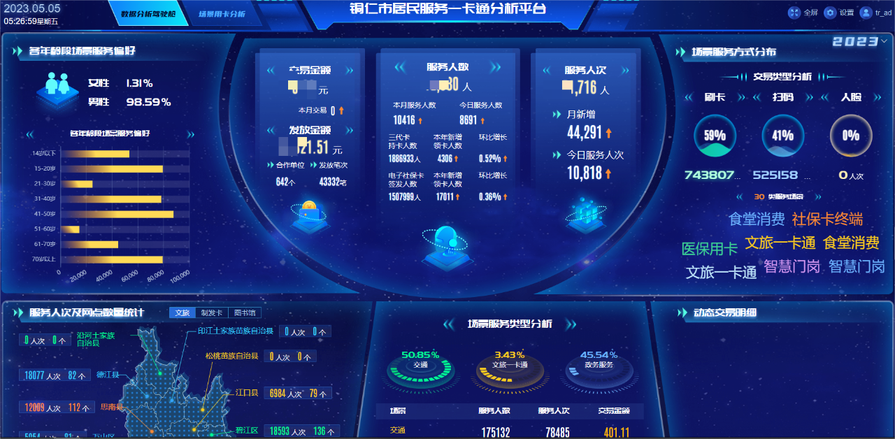 “一卡通城”是铜仁率先在贵州全省推进居民服务一卡通的有益探索,实现了社会保障卡在主城区公交、梵净山和大明边城景区、碧江区图书馆、傩文化博物馆等场景的应用。“同城待遇”涵盖交通出行、旅游观光、文化体验、智能政务、食堂消费等多个领域,形成出行、文旅、消费、政务等场景应用的“一卡通”,推动民生服务领域大数据应用,惠及全城百姓,有效降低特殊人群的数字鸿沟。