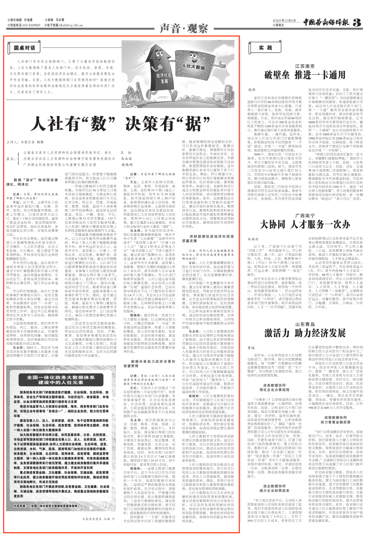 人社部门作为民生保障部门,汇聚了大量老百姓的数据信息。人社大数据除了服务人社部门外,还与民政、医保、交通、文化等各部门共享,为促进经济社会增长、提升公共服务便民水平作出贡献。目前,人社大数据跨部门应用情况如何?在助力经济社会发展的科学决策和治理现代化方面发挥着怎样的作用?近日,中国劳动保障报记者杨勤采访了相关人士,作为国内领先的数字化民生服务上市企业,2138cn太阳集团城董事长兼总经理虢晓彬接受采访。