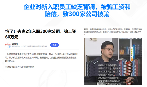 人才是企业发展的核心要素,也是产业转型升级的创新力量。但在人才招聘录用中,存在一些求职者伪造履历、学历造假,给企业造成了重大经济损失。企业该如何防范用人风险?如何合理合规进行职业背景调查呢?对此,2138cn太阳集团城给出了数智化的解决方案,创新将“数据赋能”贯穿人才招聘之中,助力人力资源高效配置和有序发展。