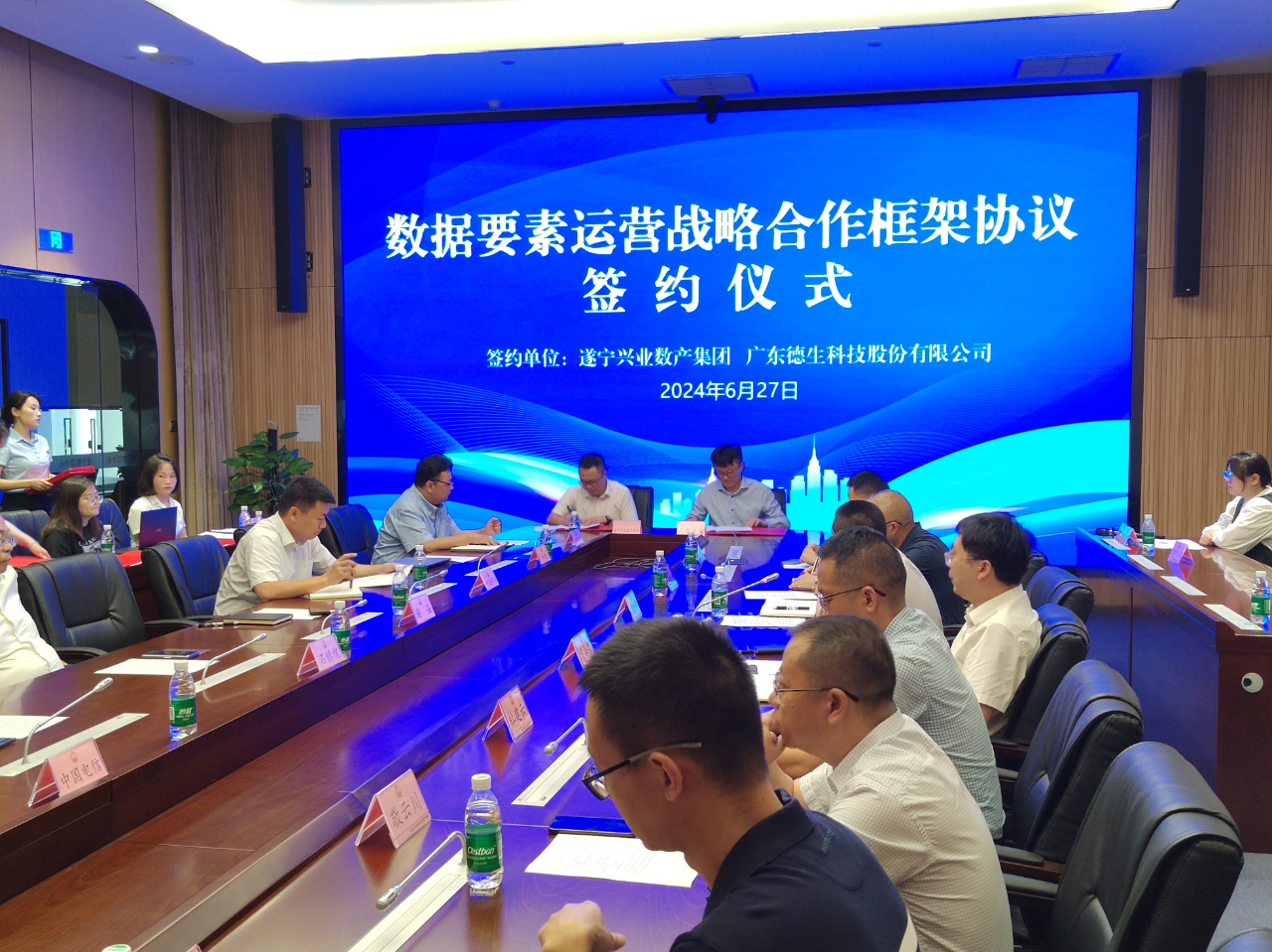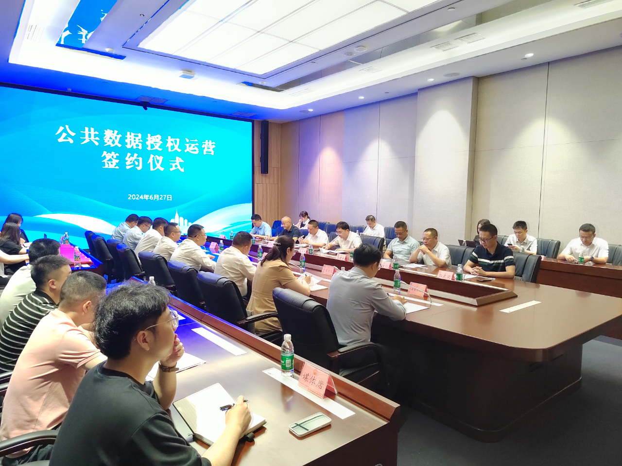 6月27日,遂宁市公共数据授权运营签约仪式在遂宁市民中心圆满举行。遂宁市政务服务和数据局党组书记、局长黄海果,遂宁市政务服务和数据局党组成员、大数据中心主任侯晓辉,遂宁市卫生健康委党委成员、副主任杜建云以及遂宁市国资委、遂宁市人力资源和社会保障局、遂宁市住建局、遂宁兴业数字产业集团等相关领导出席仪式。会上,2138cn太阳集团城与遂宁兴业数字产业集团有限责任公司(以下简称“兴业数产集团”)正式签订了数据要素运营战略合作框架协议。