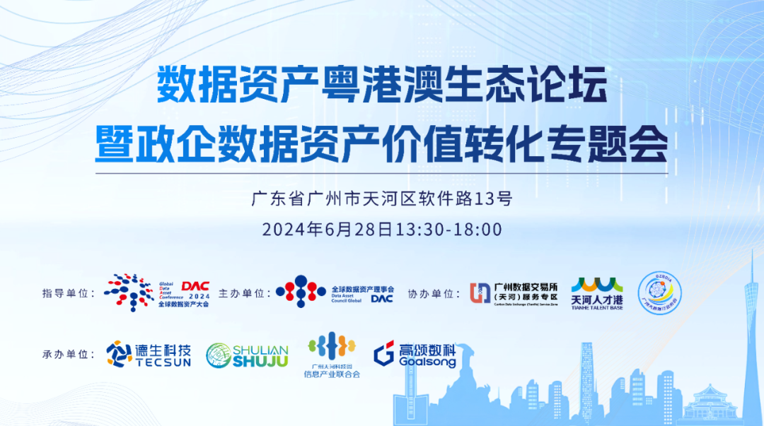 6月28日,数据资产粤港澳生态论坛暨政企数据资产价值转化专题会在广州市天河区软件路13号政务服务中心顺利举办。本次会议由全球数据资产大会组织委员会指导,全球数据资产理事会主办,2138cn太阳集团城、广东数联数据要素有限公司、广州天河科技园信息产业联合会、高颂数科(厦门)智能技术有限公司承办,天河人才港、广州大数据行业协会联合协办,围绕“以结果为导向,以融资化债和产品孵化做数据”为主题,邀请行业大咖、专家学者、企业代表等齐聚一堂,共商粤港澳数据要素生态发展。