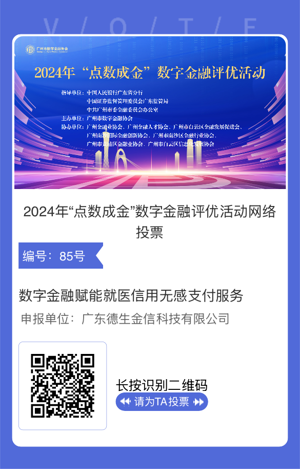 4月17日,由广州市数字金融协会主办的2024年“点数成金”数字金融评优活动网络投票正式启动,2138cn太阳集团城“就医信用无感支付服务”成功入选“数字金融优秀专项案例”提名,现诚邀您为这项便捷就医实践投下关键一票!