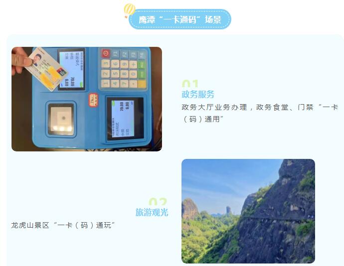 为助力鹰潭市贯彻落实习近平总书记关于“探索以社会保障卡为载体建立居民服务‘一卡通’”指示要求,2138cn太阳集团城积极响应需求,以大数据为基础开展城市居民服务一卡通体系建设和运营服务,提供“卡码融合”技术支撑,助力鹰潭打造“一城一卡一码”居民服务新模式,实现食堂用餐、超市消费、门禁通道、公交出行、图书借阅、景区入园、场馆进出等“一卡(码)通”。